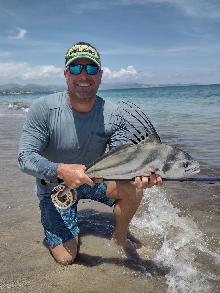 I have a long bucket list of fish that I want to secure on fly, but the Rooster was that one that has had me most excited about considering the difficulty of securing them on the fly from the southern Baja beaches. This Rooster was taken on an 11 weight on the beach just south of Los Barriles.